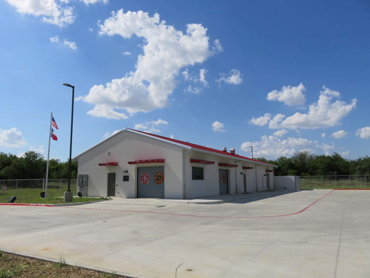 A new 8,758 sf building constructed of pier foundations and perimeter grade beams with slab on grade floors, steel structure and masonry bearing walls/load bearing cold formed metal framing, with natural stone veneer cladding and standing seam metal roof. Complete with full size kitchen, dormitory, dining, exercise space, locker room, a second floor mezzanine with an adjacent Battalion Chiefs Dormitory Building.