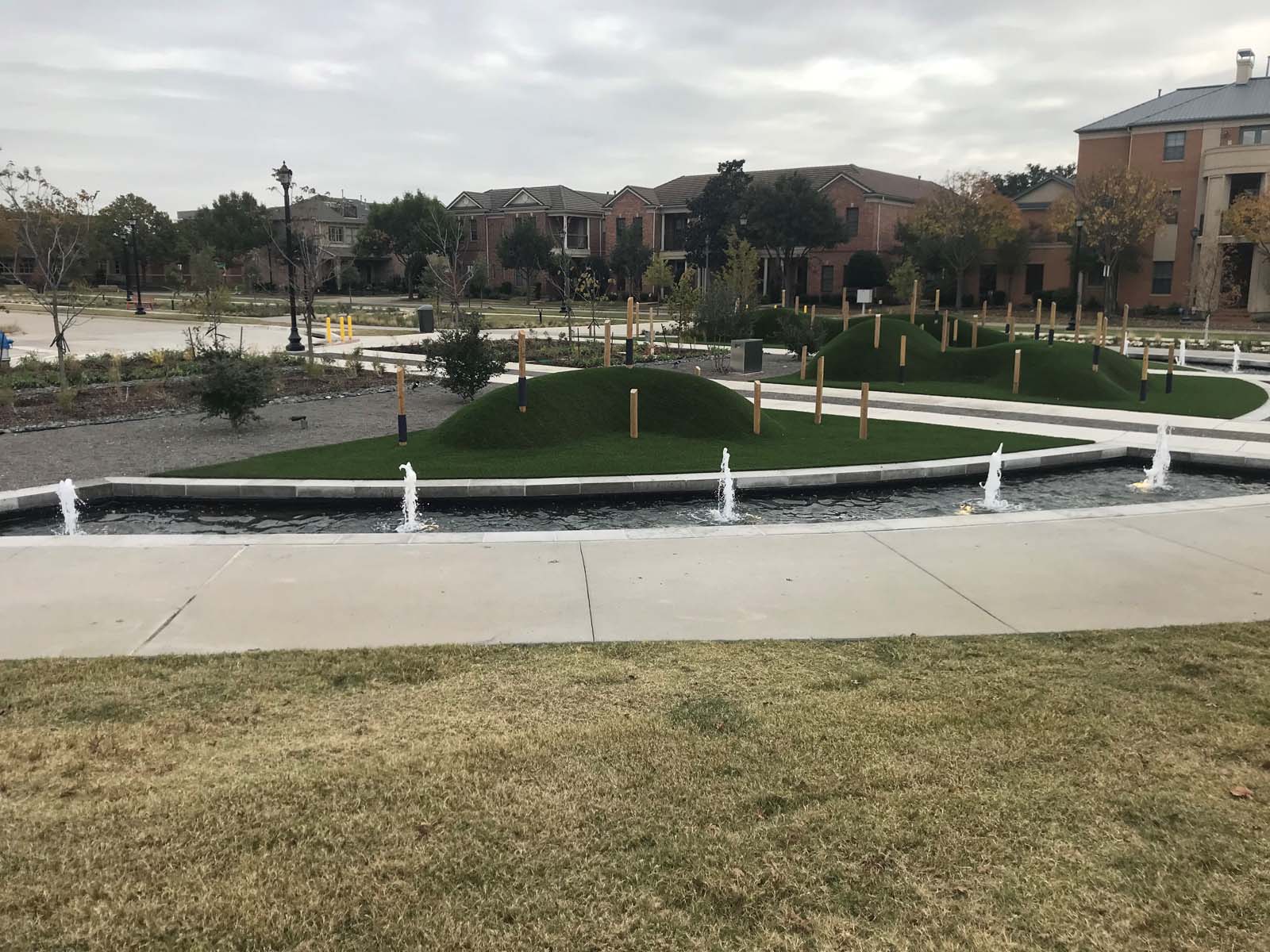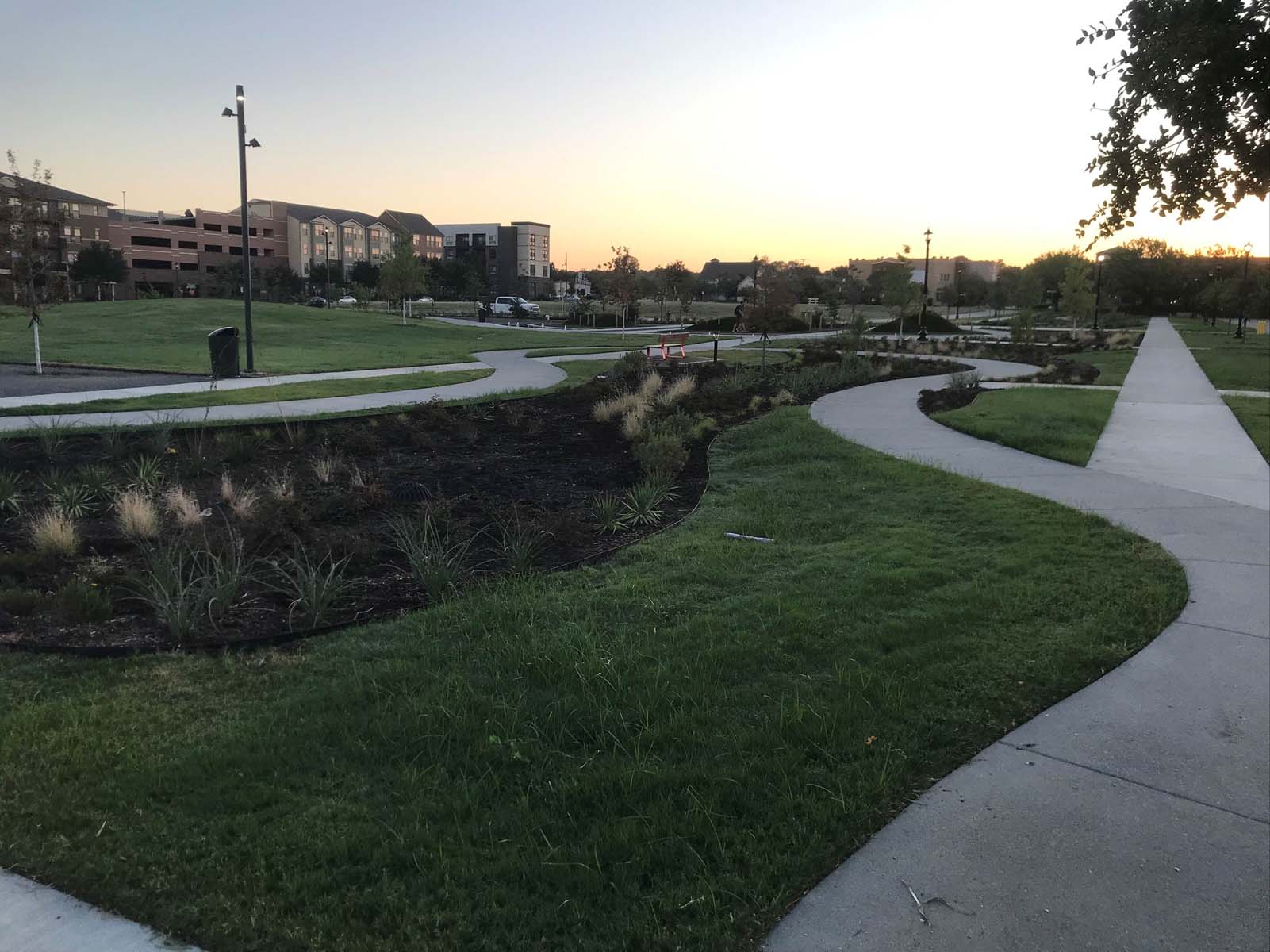 New construction of a 2-acre park located in the midst of multifamily housing, businesses and City Hall. This multipurpose park consisted of trails, pavilions, water features, seating areas and play areas.